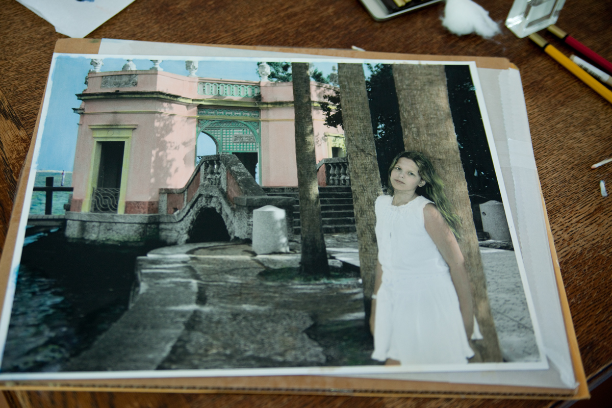 Back in the day,before color film was invented artists would hand paint a black and white photo with oils to simulate colors. I have always loved this technique and learned to “hand tint” 28 years ago when I was at Memphis College of Arts. One of my all time favorite portraits I have ever done is a life size black and white handtinted of my youngest child Hannah when she was 6 years old. This portrait measures 5 feet by 4 feet and makes quite a statement in my dining room. The paper used to print these portraits are archival to 200 plus years so they become treasured heirlooms. I have several portraits I have handtinted of my girls over the years and I never get tired of looking at them. Recently I finally got around to hand tinting a portrait of my oldest daughter Ashlee from when she was 12 years old. It was taken in the most beautiful place in Miami ; the John Deer estate, Vizcaya. I took a few photos while in the process of hand tinting it to show you how it transforms an image. It saddens me to think this is becoming just another lost art in our world of technology. Today when a photographer wants to handtint an image they just de-saturate the color image or throw a filter on it. The is just a facsimile of the real thing as you can never get the depth, or organic quality that a true black and white image painted with real oils produce. It takes me hours and hours to paint a portrait and create a work of art that will last many lifetimes. For me I have always been about creating art and I’m glad that I took the time to create these beautiful portraits of my daughters that their children will cherish one day as well. The generations coming along will always be able to have a tangible history of me (as the artist) and their moms of a precious reminder of a time long gone by.